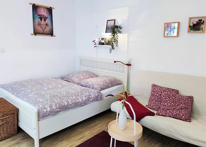 Das 45 m^2 große Apartment mit Garten, 10 min zu Fuß in die Koblenzer Altstadt liegt in 18 Fußminuten Entfernung von der Historiensäule und bietet Parkplätze für alle, die mit dem Auto anreisen. Vier Türme ist auch lediglich 13 Gehminuten vom Apartment entfernt gelegen.